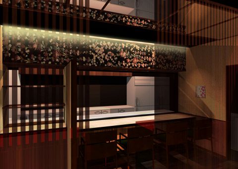花札をモチーフにしたモダンな空間が広がる大人の和風居酒屋。